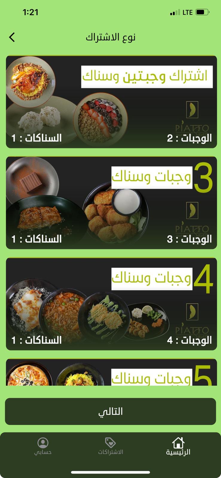اختيار الوجبات المناسبه لك عن طريقك واختيارك بالتطبيق